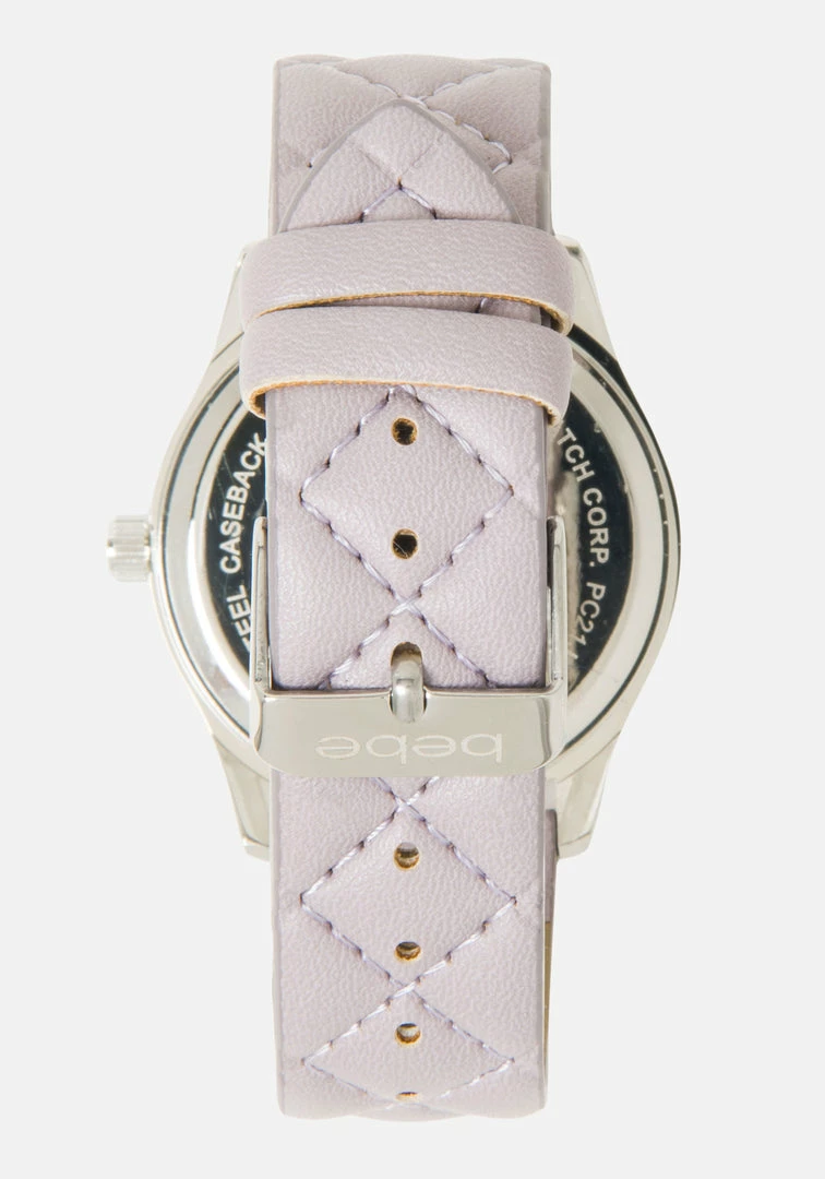 Fashion, function, and value. Crystal Vegan Leatherrple case with on-trend quilted Vegan Leather strap.