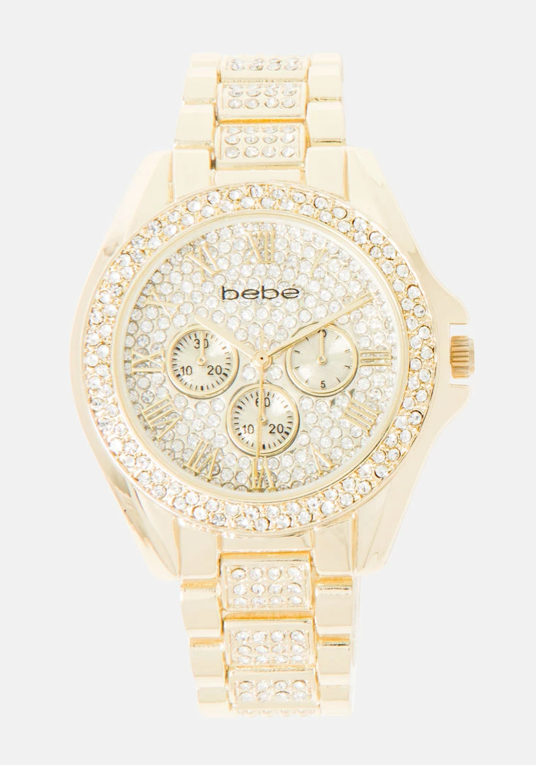 On-trend, gold-tone crystal watch with full pave crystal dial.