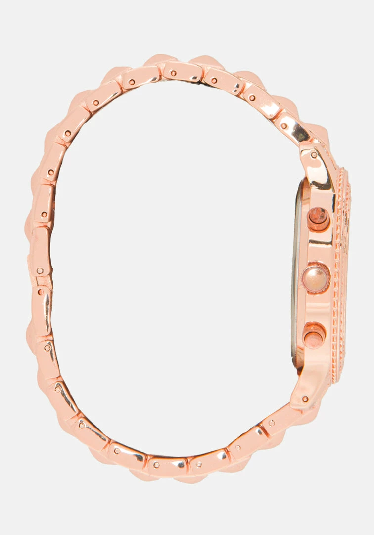 Bold and makes a statement, this watch has a pyramid detail on the strap and a double rhinestone detail around the face.