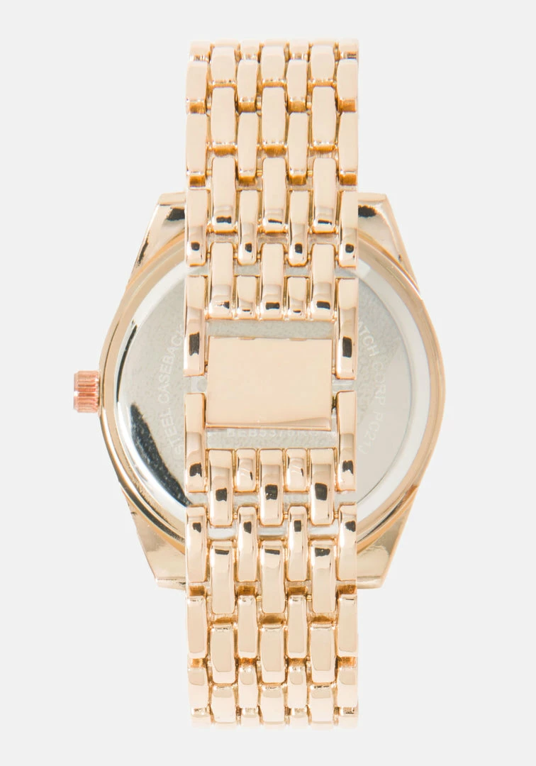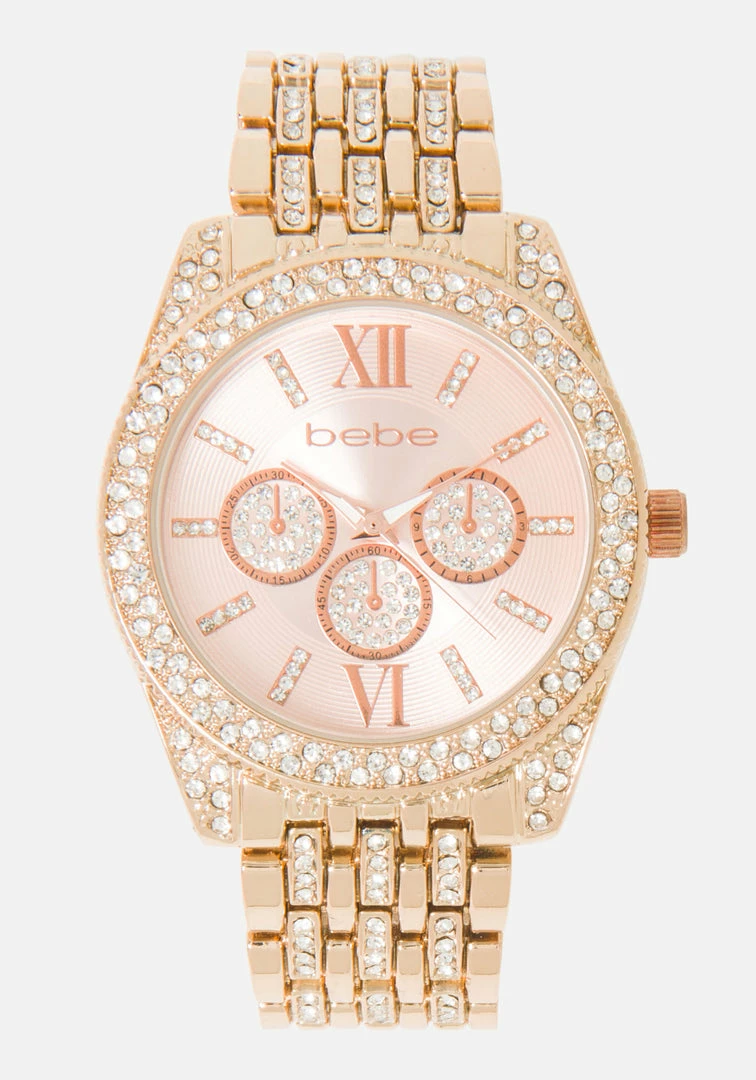 Fashion, function, and value, ladies Rosegold crystal bezel watch.