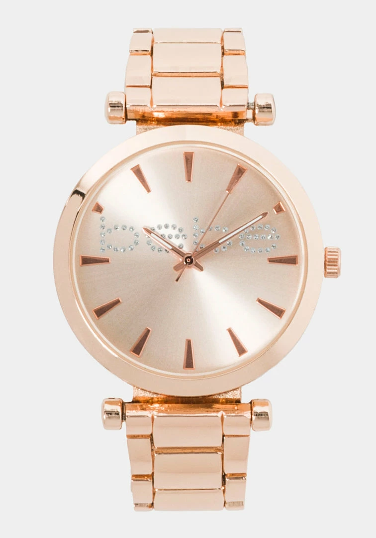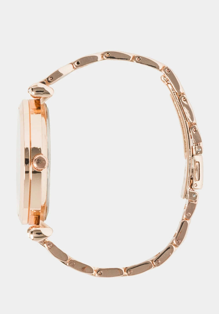 Go glam with this sweet set. Featuring a rose gold watch and bracelet set of 2.