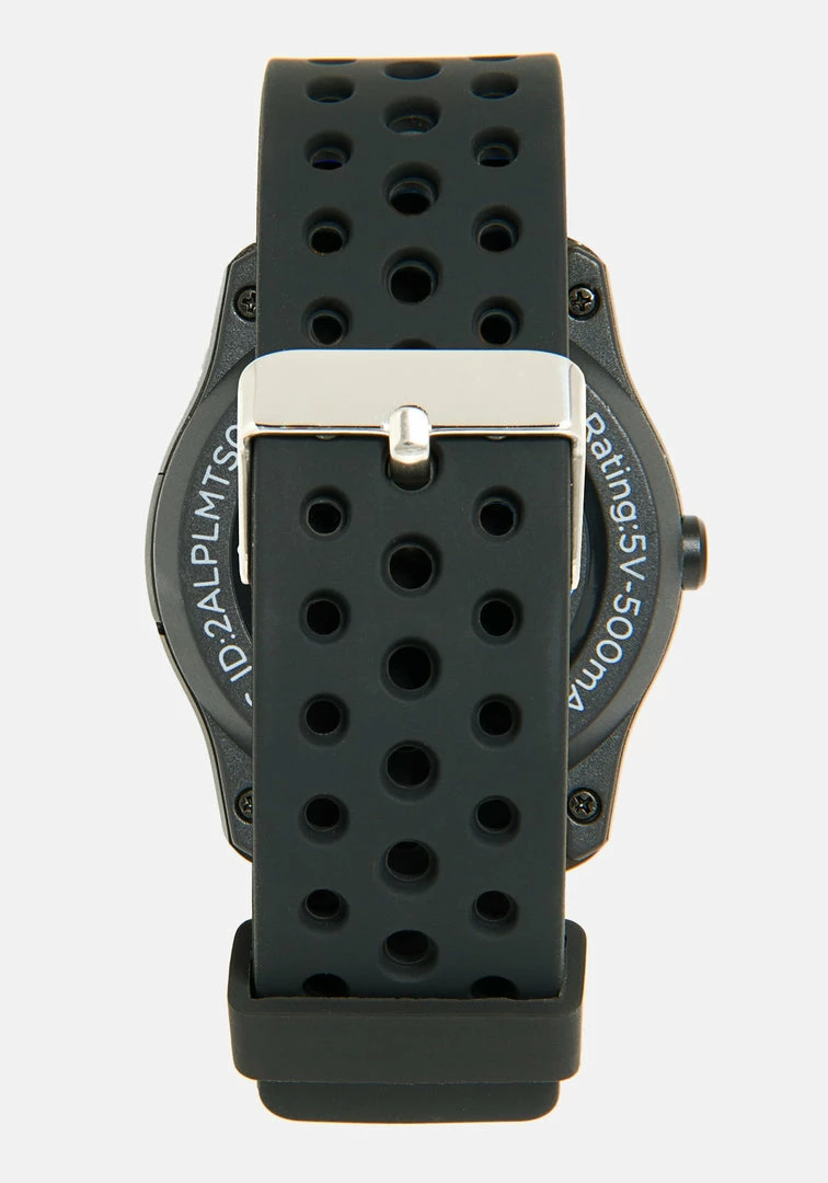 - Alloy metal case, Silicon Strap, Rechargeable Li-Ion Battery.