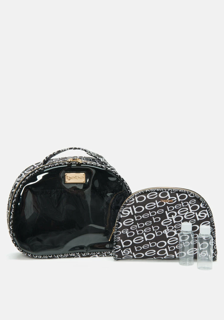 Hold your beauty essentials in these roomy Bebe Cosmetic Bags. Set includes 2 different size bags and 2 travel bottles that hold 50ml each. Perfect for your next trip.