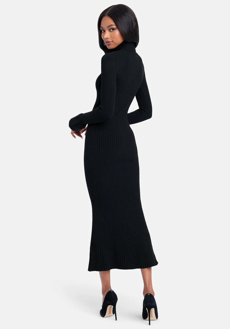You’ll be ready for the season in this cozy Bell Sleeve Midi Dress, knit with wide ribs and a warming turtleneck.