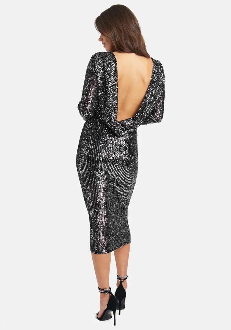 Get ready to make some glam plans in this Sequin Cowl Back Dress. It’s the perfect party piece for any occasion. Features a hidden back button closure for a more subtle style or keep it an open back for more drama!