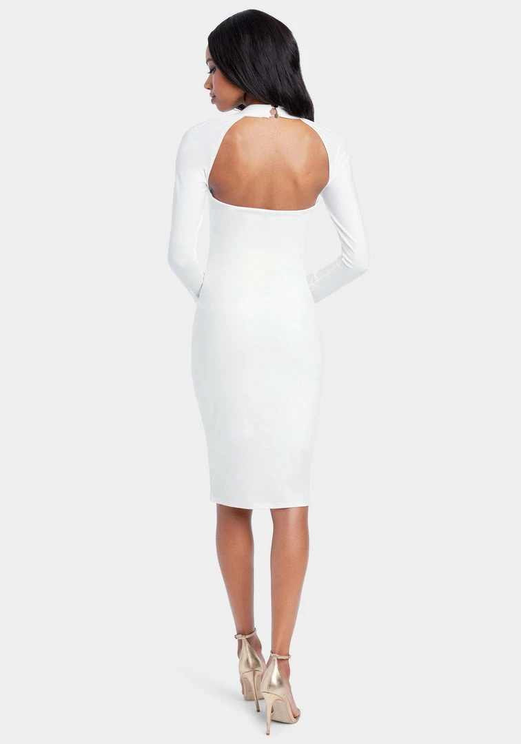 An LWD with a twist. This Cutout Knit Bodycon Dress features a midi length and a cure-enhancing fit that can be dressed up or down.