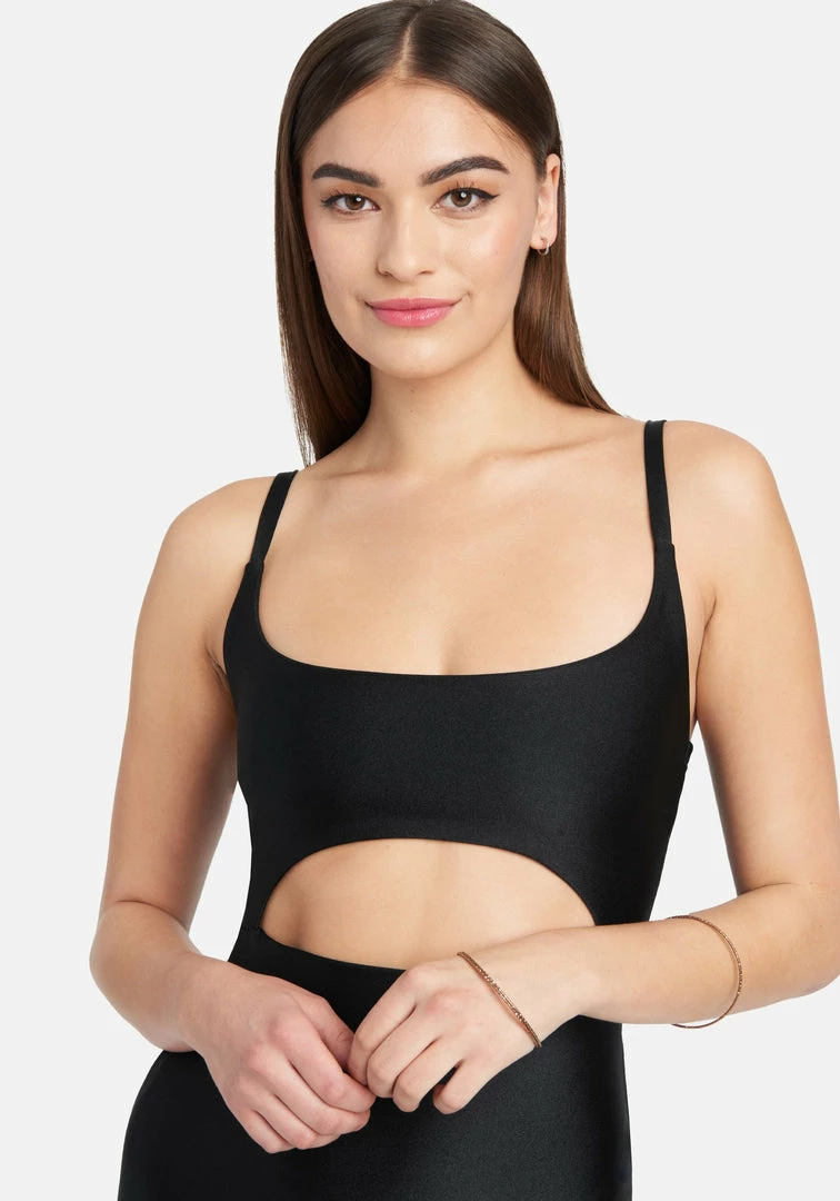 Fitted and stretch, this sleek bodycon dress is sure to become an instant favorite. With a cutout that shows just enough skin, it’s the perfect way to make a statement. Pair with your favorite lipstick for a look that’s hip and sexy.