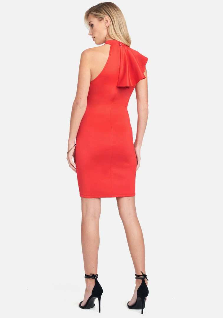 A figure-flattering fit and artfully modern bow on this Drama Ruffle Halter Dress will catch compliments at your next event.