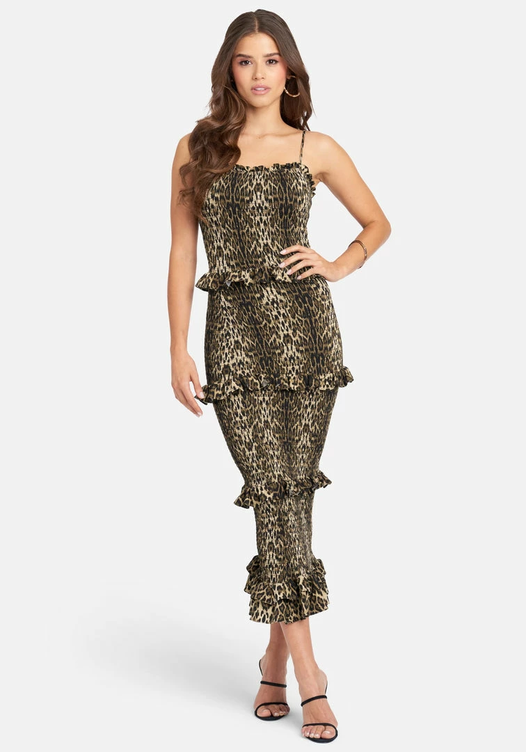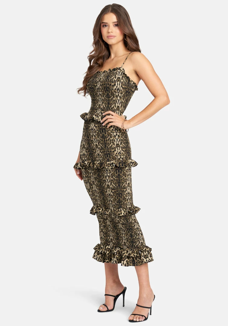 This sultry Knit Smocked Midi Dress is perfect for holiday parties. Pair it with a blazer and you have the perfectly playful office look.