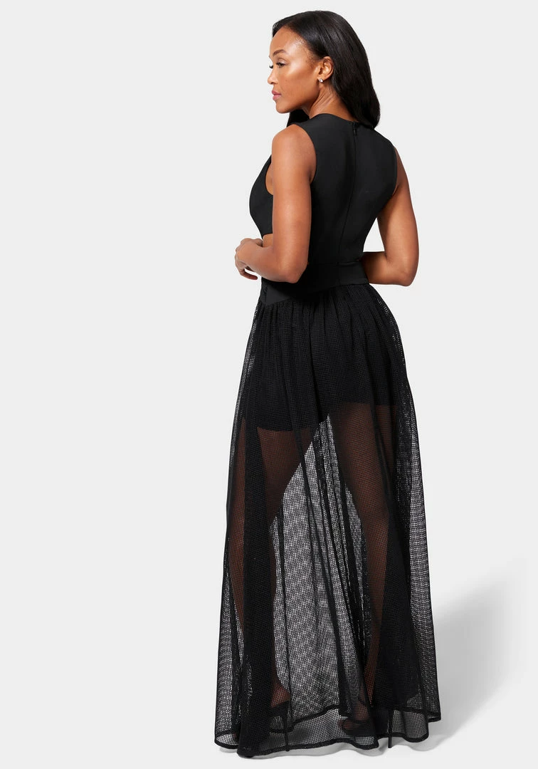 The Mesh Deep V Buckle Gown is perfect for your black tie events this spring. Featuring a short lining, side cutouts, and a show-stopping neckline.