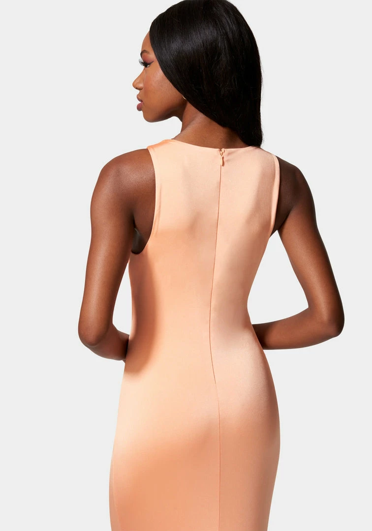 When in doubt, cut it out. This sleeveless midi dress features a sultry front cutout design with polished ring details, a bodycon silhouette and a concealed back zipper.