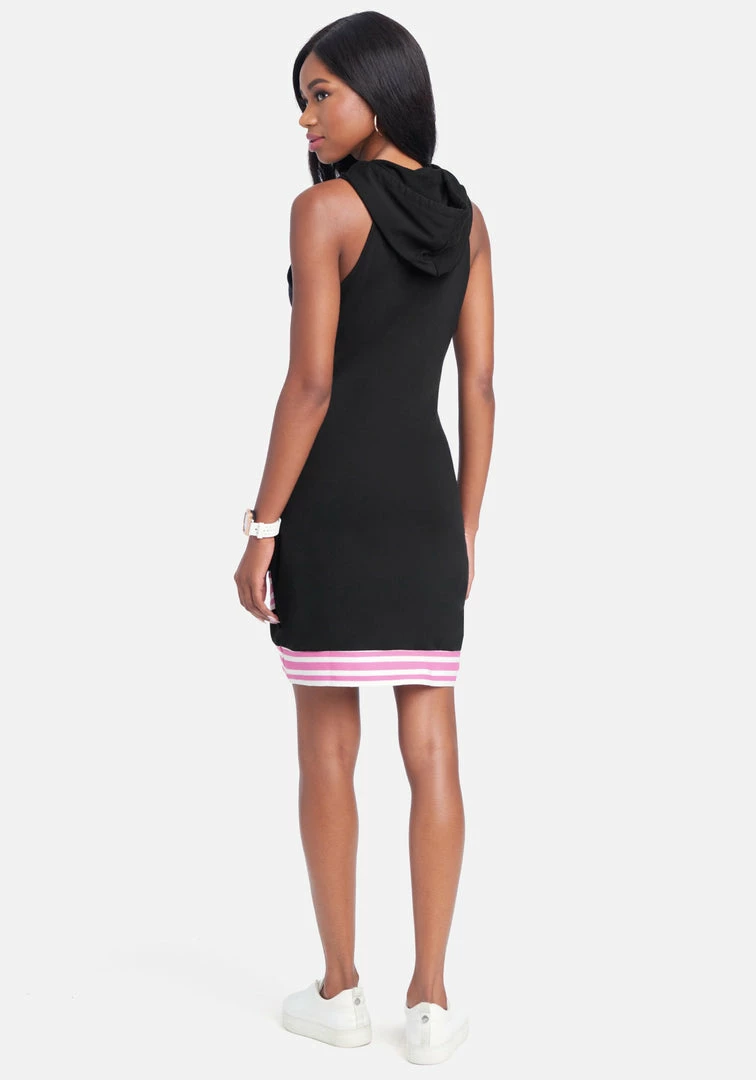 Athleisure but make it cute. This Bebe Sleeveless Hoodie Asymmetrical Dress is the perfect casual style.