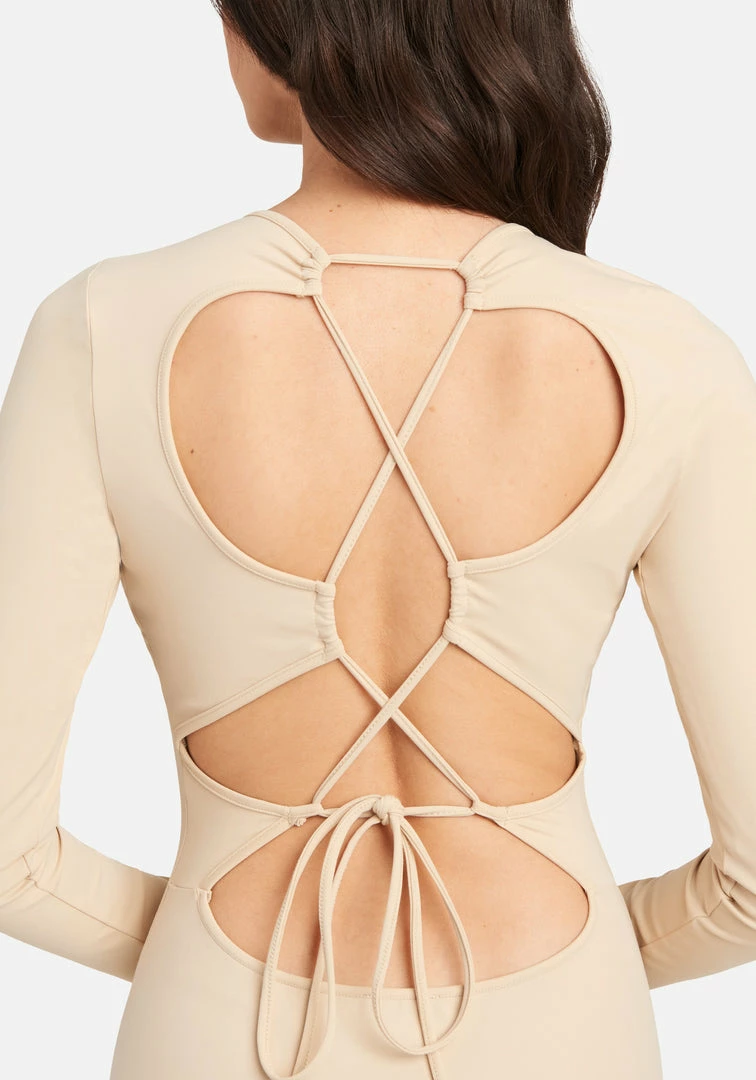 A seductive style that makes a daring exit. This Tie Back Mini Dress hugs your figure in all the right places.