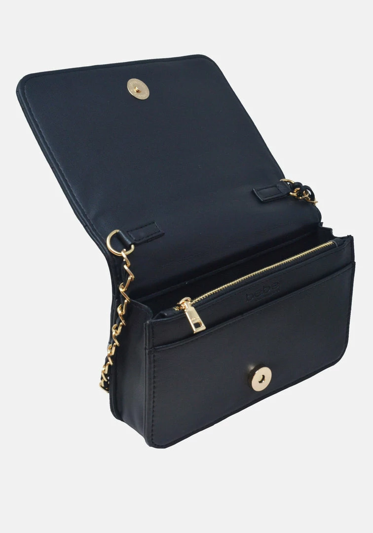 Every girl needs to own one quilted bag. The flap closure crossbody is it. With a classic quilting design and simple Bebe logo and ‘b’ charm, features a detachable braided chain crossbody strap.