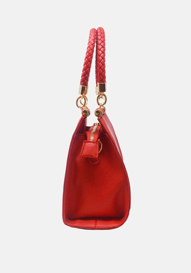 The perfect shopping companion is a stylish bag. This mini shopper bag features braided rope top handles, a detachable crossbody strap, and charm logo plate detail.