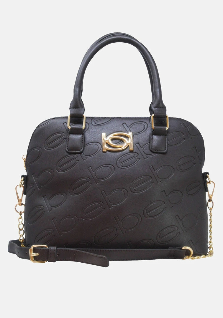 Look and feel like a total Bebe babe with the Pamela Dome Handbag featuring the classic logo throughout, top handles, zipper closure, and adjustable crossbody strap.