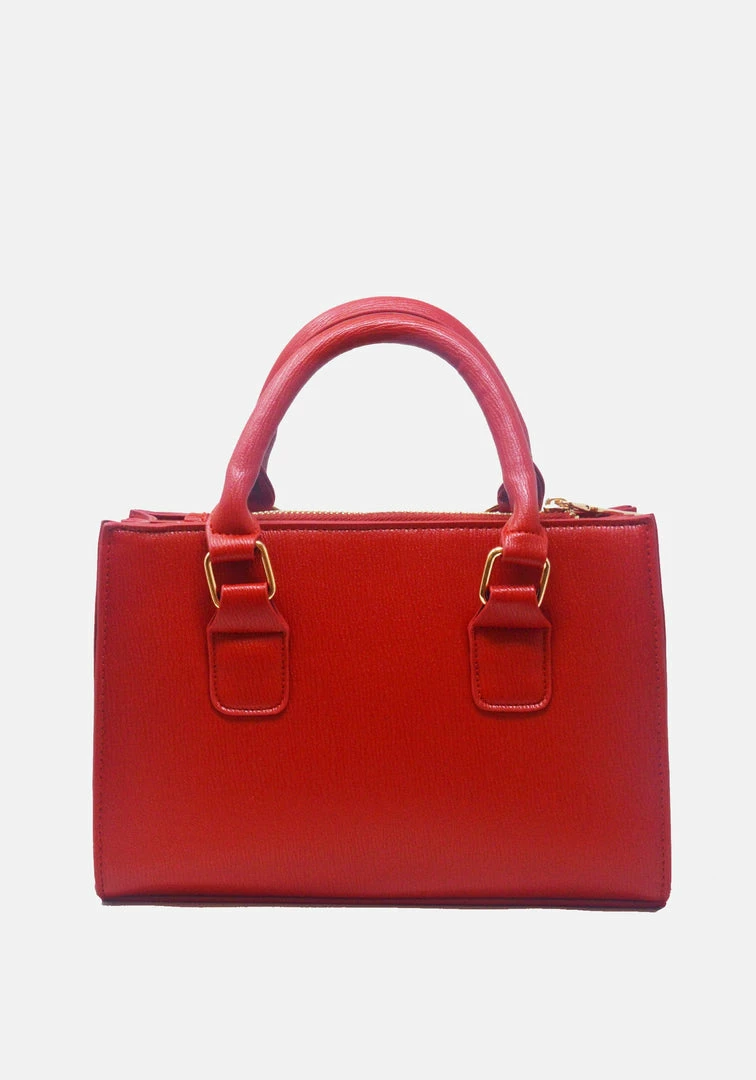 This compact mini satchel offers a perfect amount of space for your everyday essentials. Features textured faux leather, stylish top handles, and a detachable crossbody strap.