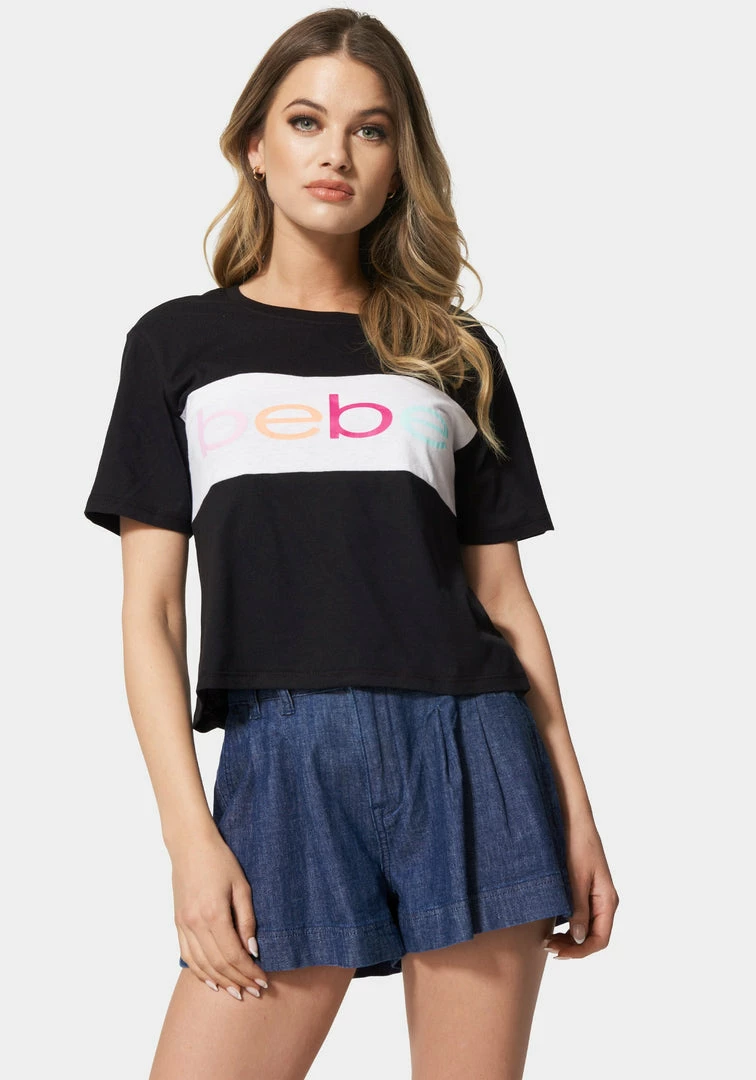 A colorful logo graphic adds a fun feel to this tee cut for a comfortably boxy fit.