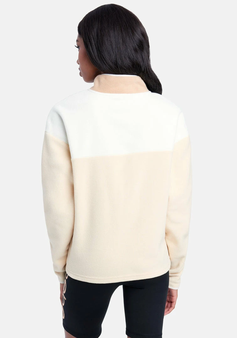 Workouts just got an upgrade. Our signature Bebe Logo Fleece Pullover with a vintage-inspired color block design. Complete with front slip pockets with contrast trim.