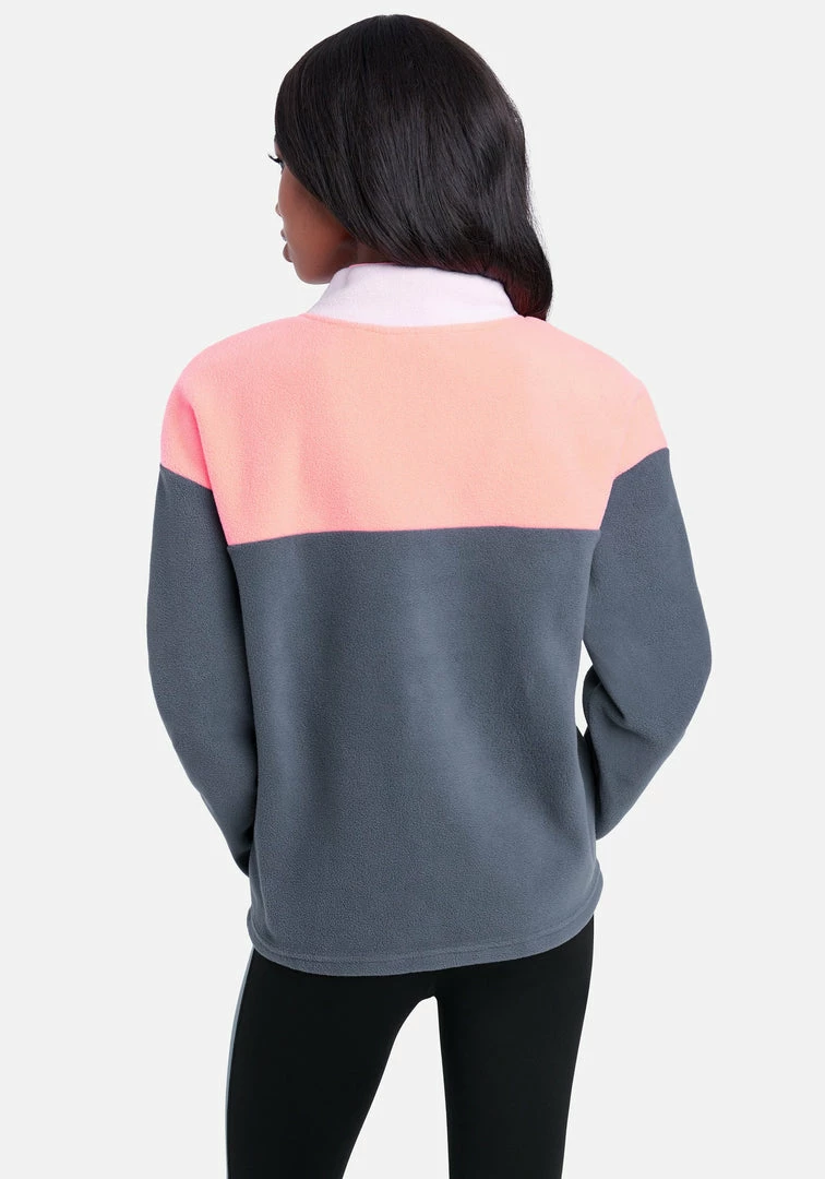 Workouts just got an upgrade. Our signature Bebe Logo Fleece Pullover with a vintage-inspired color block design. Complete with front slip pockets with contrast trim.