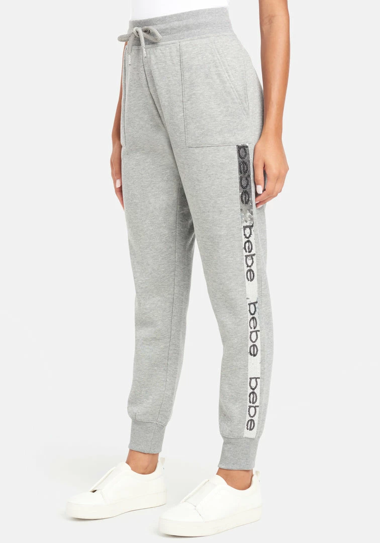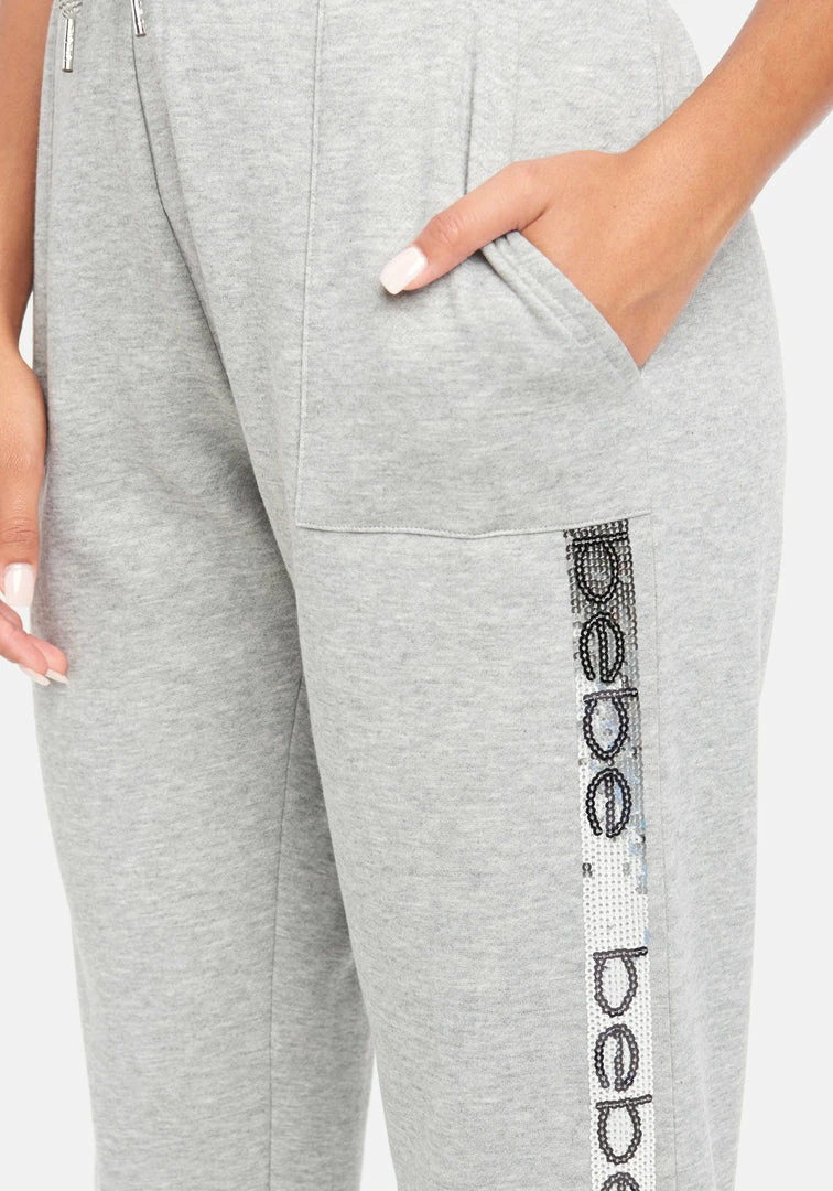 Shine bright in these joggers that provide the ultimate comfort and cuteness. Perfect for lounging in style or on the go and features sequins and a Bebe logo sequin stripe down the side.