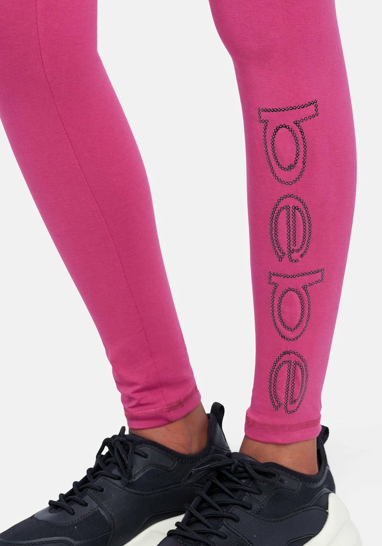 Loungewear leggings that are oh-so-chic. These matching leggings feature a body-slimming silhouette and sequin Bebe logo down the leg.