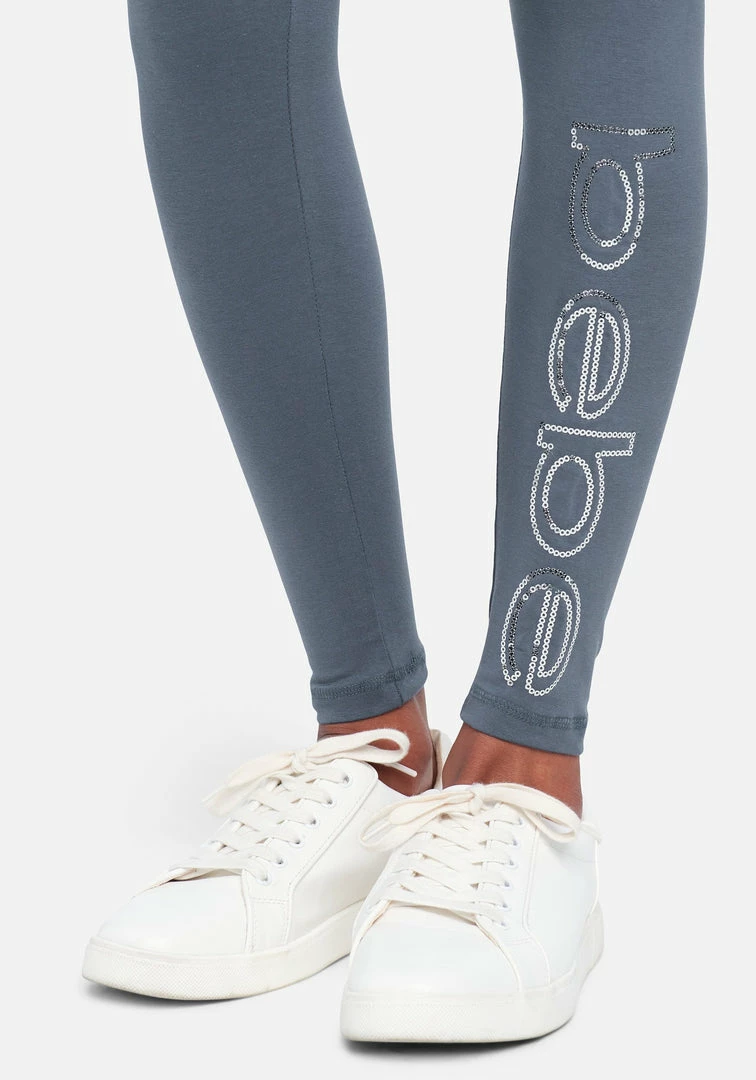 Loungewear leggings that are oh-so-chic. These matching leggings feature a body-slimming silhouette and sequin Bebe logo down the leg.