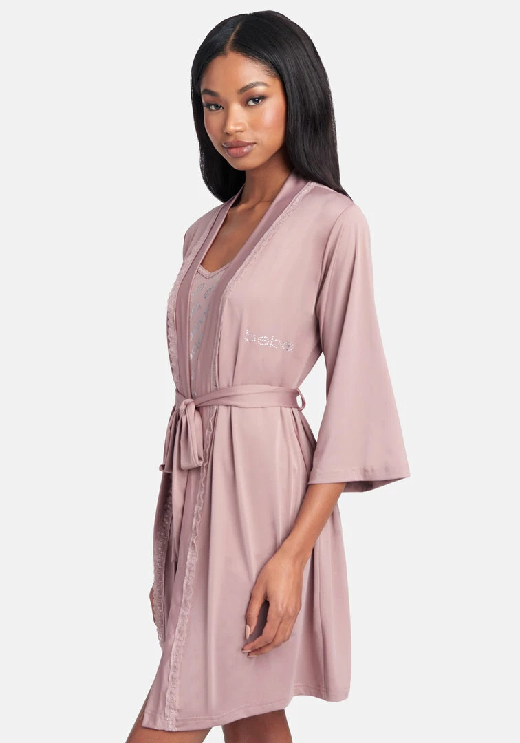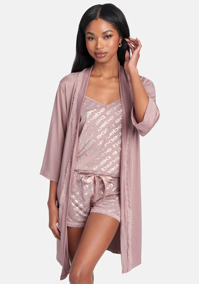 Travel in style. This 3-Piece Set is the perfect packable travel companion. Complete with a cozy robe, the cami and shorts feature an all-over log print that’s perfect for lounging in style.