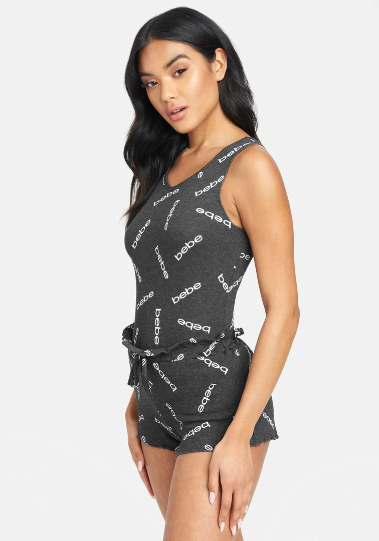 Comfy short set for lounging around. Featuring a waffle weave fabric and all-over Bebe logo print.