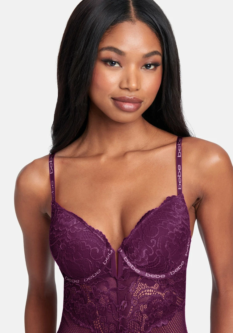 Get the support you need in a stunning Mega Push-Up Lace Bodysuit that features a cheeky backside and a seductive fit.