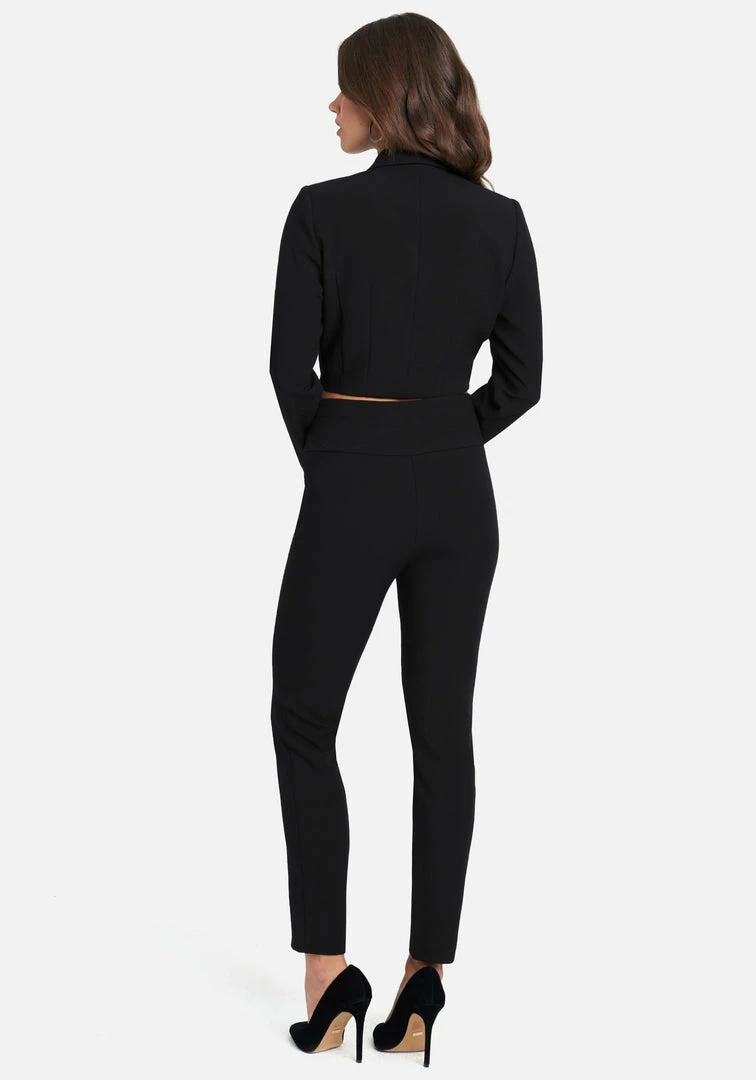 Borrowed from the boys, these Tuxedo Style Tailored Pants feature a straight leg and a wide waistband that flatters every figure.