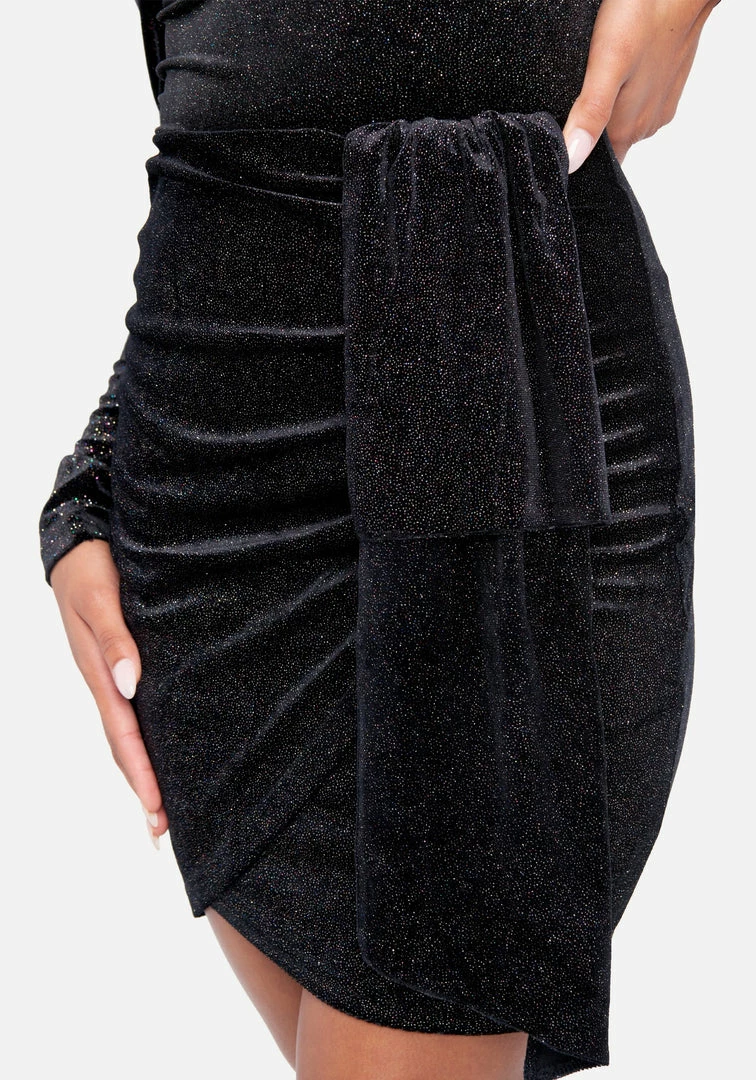 TC Asymmetric Side Cascade Velour Skirt