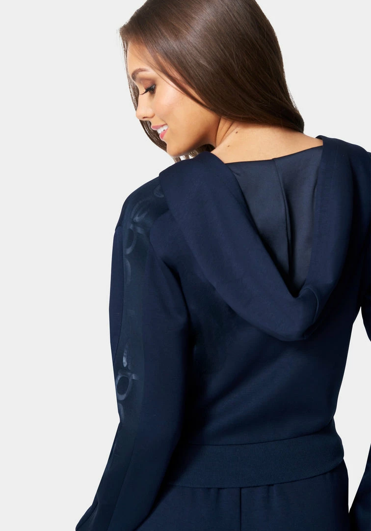 Cozy and cute. This Zip-Up Jacket features a cropped silhouette and Bebe logo-embossed detailing down each arm.