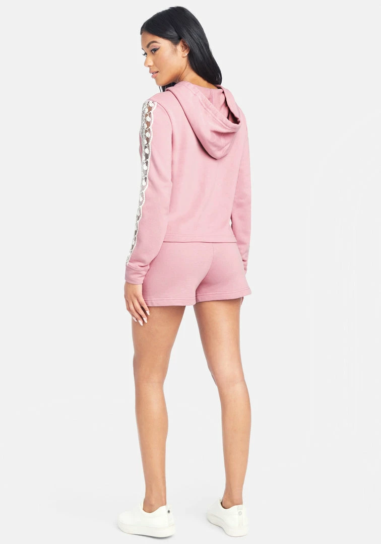 The Bebe Logo French Terry Shorts keep you cute and comfortable all day and feature the classic rhinestone logo, side pockets, and a drawstring waist.