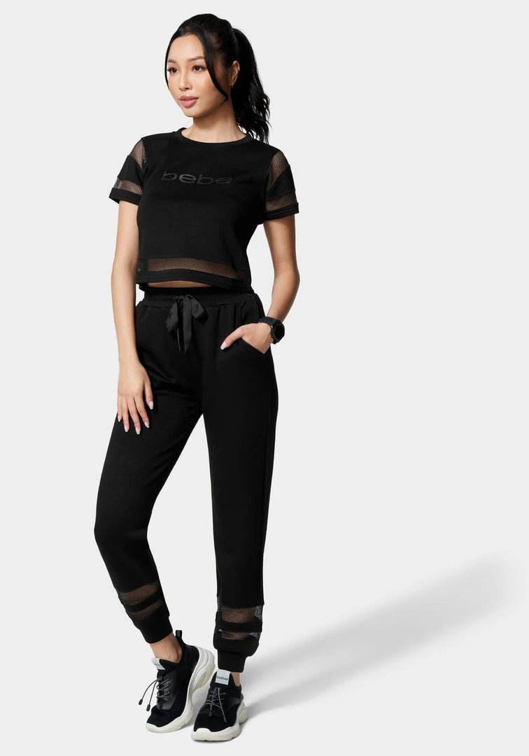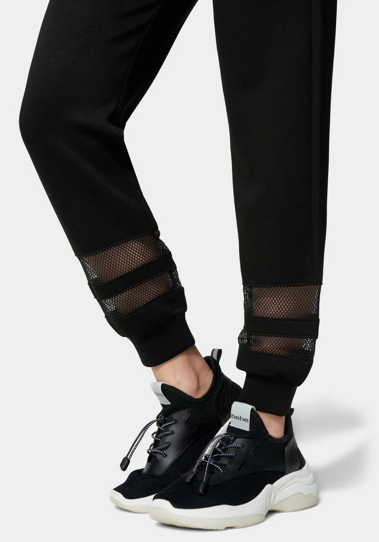 Our Bebe Logo Scuba Jogger features mesh inserts along with the cuffs, side slip pockets, elasticized drawstring waist, and a relaxed silhouette. Pairs well with the Bebe Logo Scuba Top.