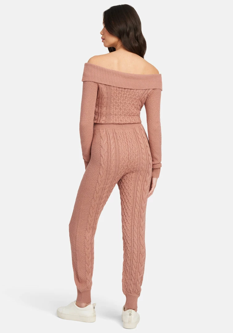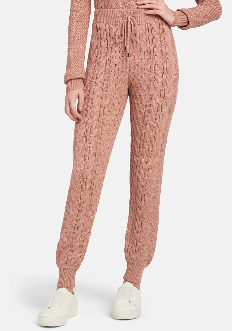 Set yourself up with a cozy wardrobe that feels as good as it looks. These easy-fitting Cable Knit Sweater Pants feature a high waist with a drawstring.
