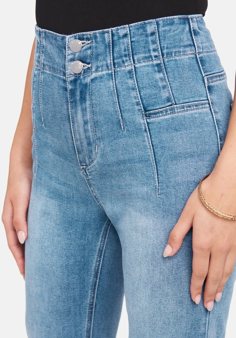 The perfect pair of denim jeans for casual-off days, the Bebe High Rise Front Pleating Straight Leg Jeans offer a button-up, zipper placket with a 5-pocket design and a flare leg.