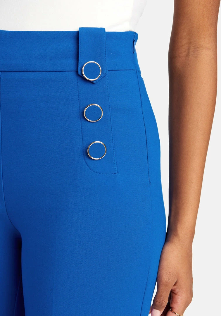Bottoms up! This is a Wide Leg Pant featuring a high waist, polished button hardware, belt loops, and a hidden side zip closure. Pairs well with strappy heels or ankle boots. Make it a matching set with the Double Breasted Blazer Jacket.