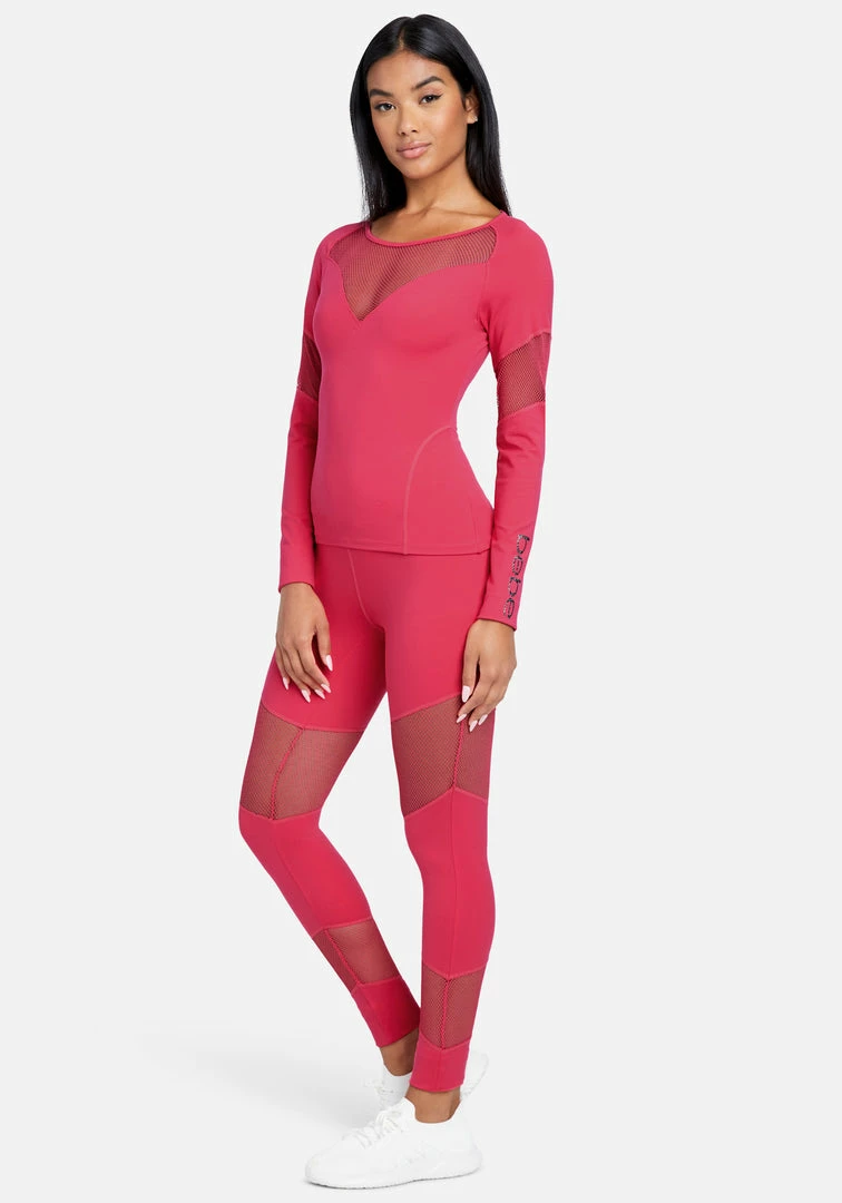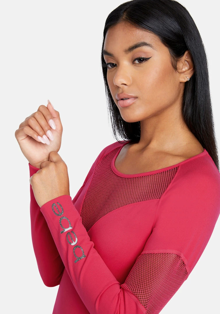 Get active in this Bebe Mesh Combo Logo Sleeveless Top for workouts or hanging out, plus it features a sexy mesh front to keep your outfit stylish no matter the conditions.