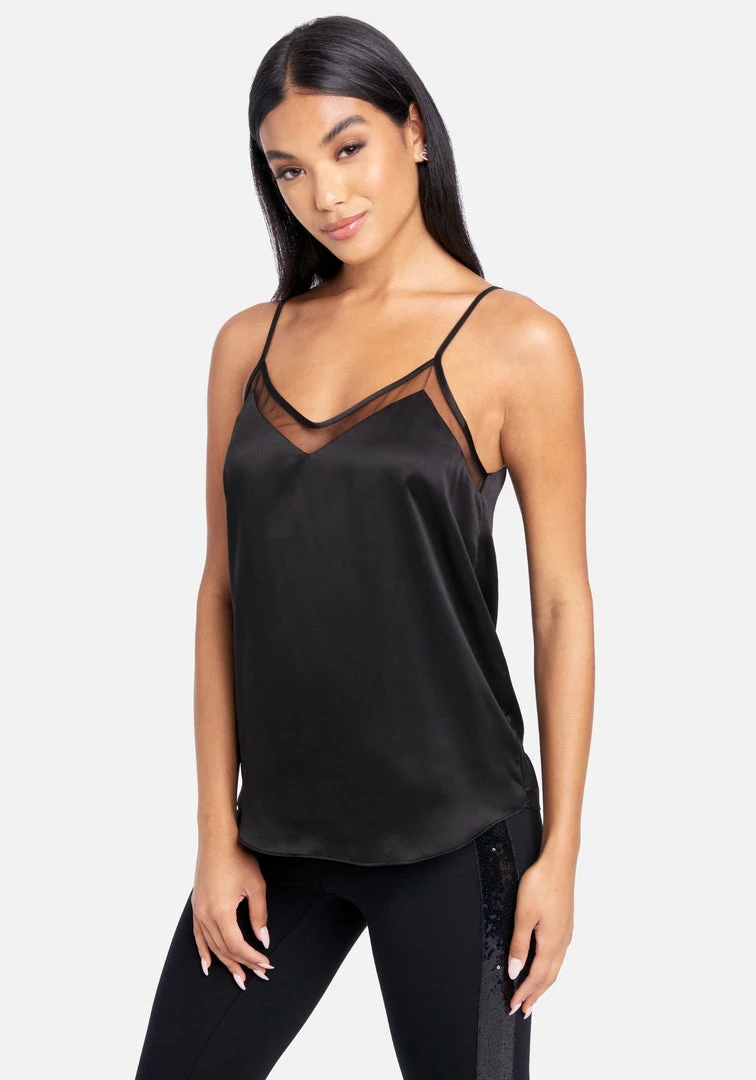 A sexy satin cami that can be dressed up or down depending on the day. The mesh top adds just enough of a sneak peek for a sexy yet classy vibe.
