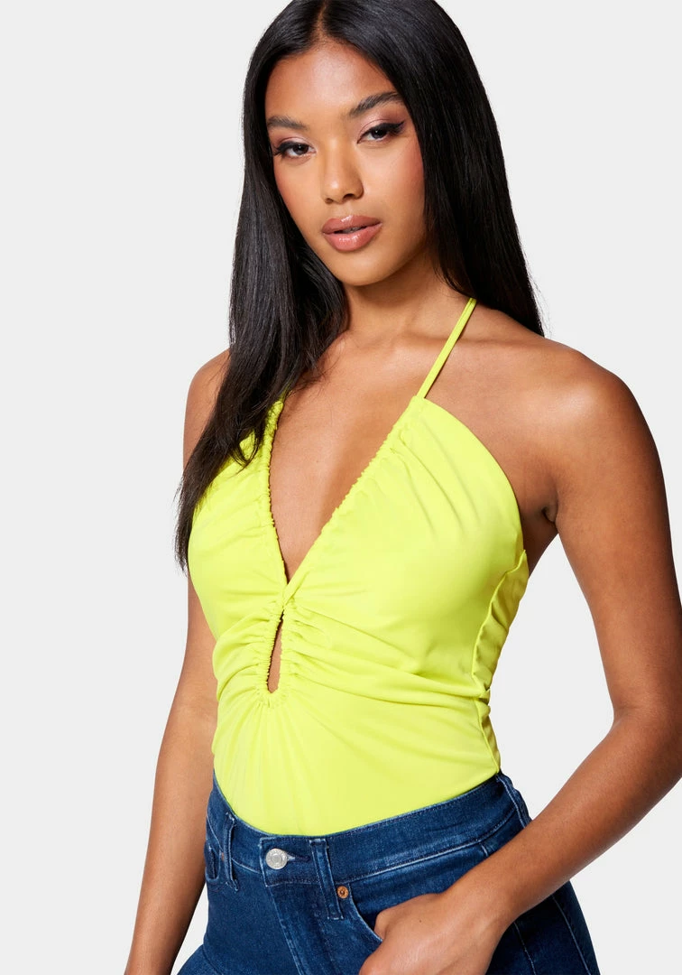 It’s getting hot. This sultry halter top sports a flirty keyhole cutout design at the center front, self-tie back, and form-fitting silhouette for a style that slips into jeans or skirts effortlessly.