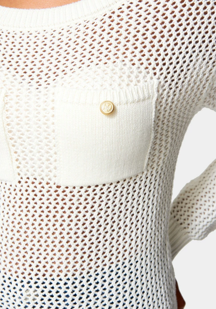 Hot mesh. This open-knit sweater is a breezy addition to your warm-weather wardrobe, complete with button-flap chest pockets, goldtone hardware, a crew neck, and ribbed knit trim.
