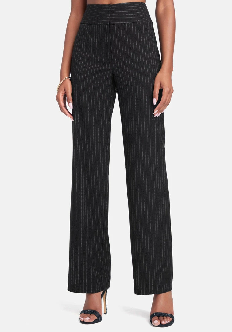These straight pinstripe pants are for business and pleasure. No need to think twice, these tailored pants need to be added to your closet.