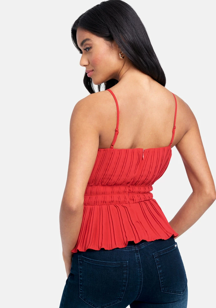 A smocked waist cinches this delicate chiffon top for a soft, romantic silhouette. Features adjustable straps and a hidden zipper at the back for the perfect fit.
