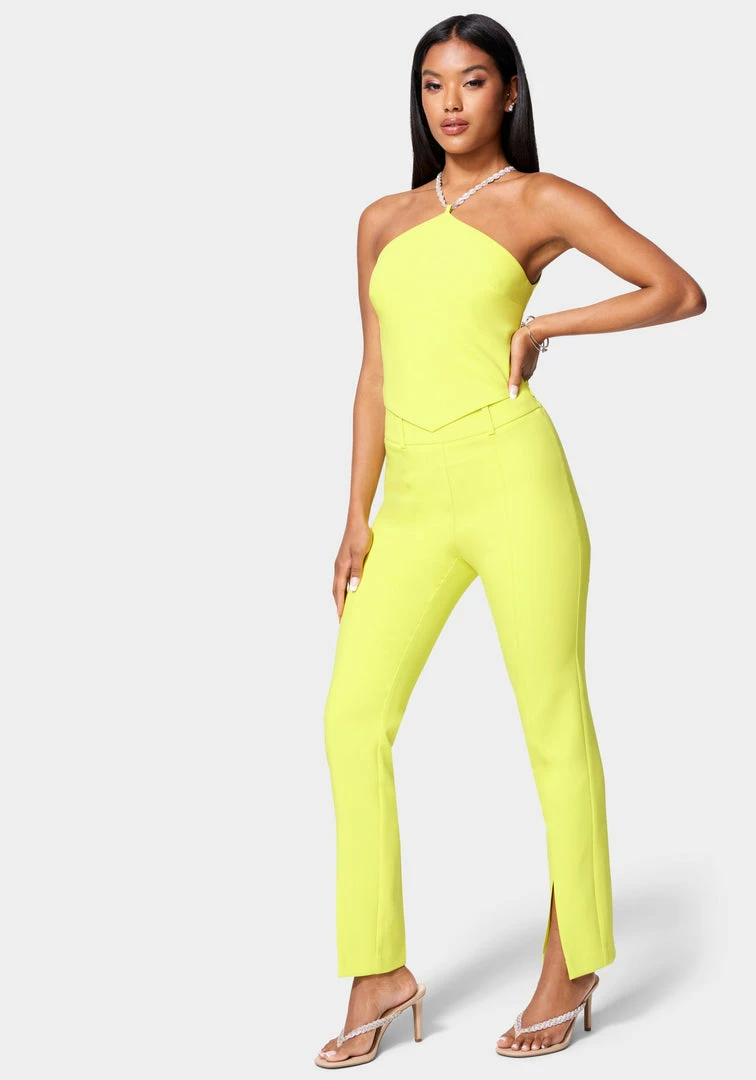 So light and refreshing. This high-waisted woven pant features a front slit along the leg and a slim fit throughout for the perfect summer vibe.