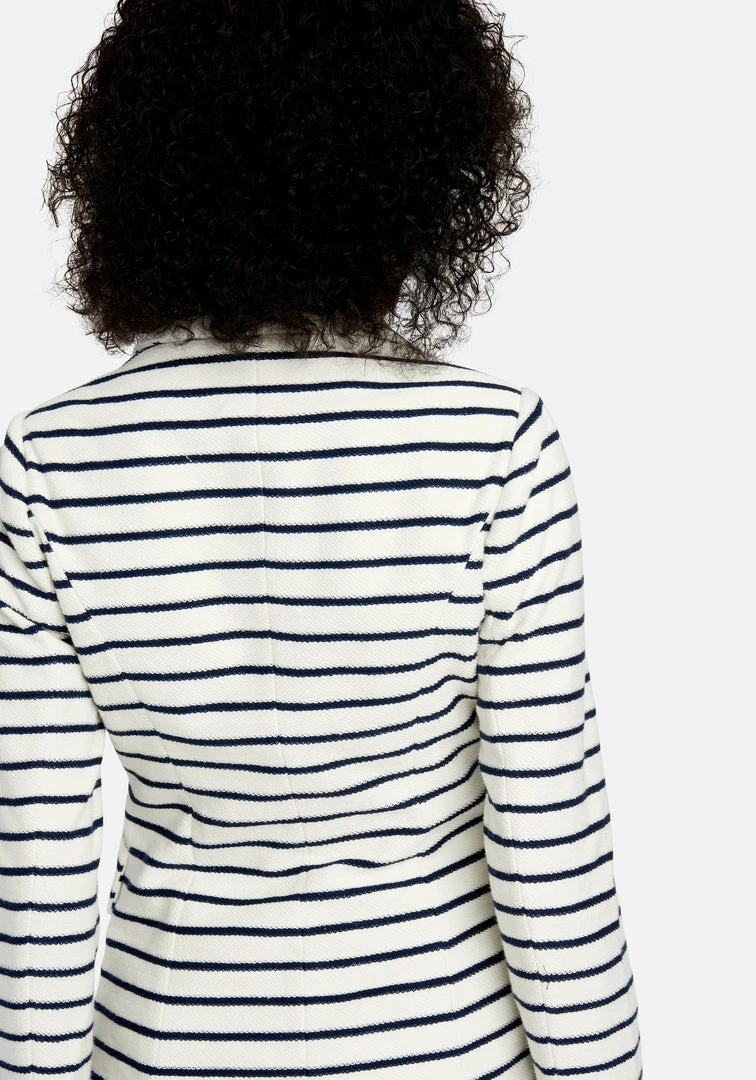 Hello, resort season. This is a lightweight blazer jacket featuring a striped knit construction, long sleeves, and a relaxed silhouette. Pairs with the matching Stripe Knit Skort or lightweight shorts for a casual daytime look.