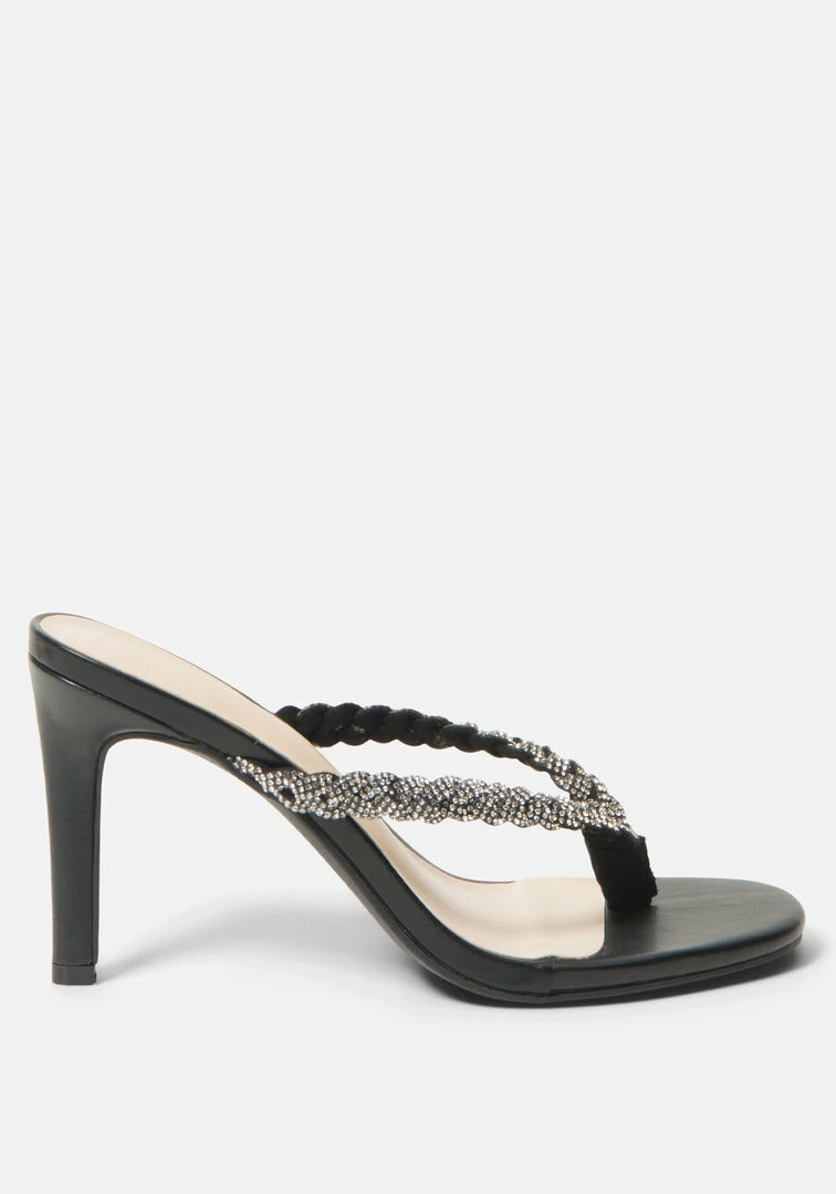 Shimmering crystals add sparkle and shine to your next night out with this stiletto sandal.
