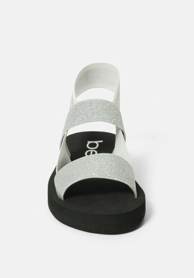 Sporty and sexy sandals. Featuring strappy elastic bands that secure sandal while providing a chic and comfortable style.
