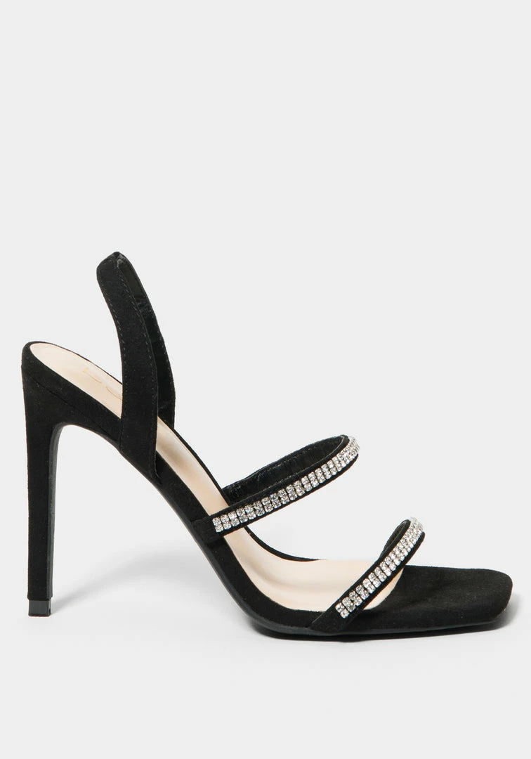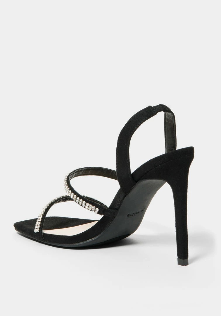 Your plus two. The Calliope is a stiletto heel with two straps embellished with rhinestones for an elegant walk wherever you’re going.