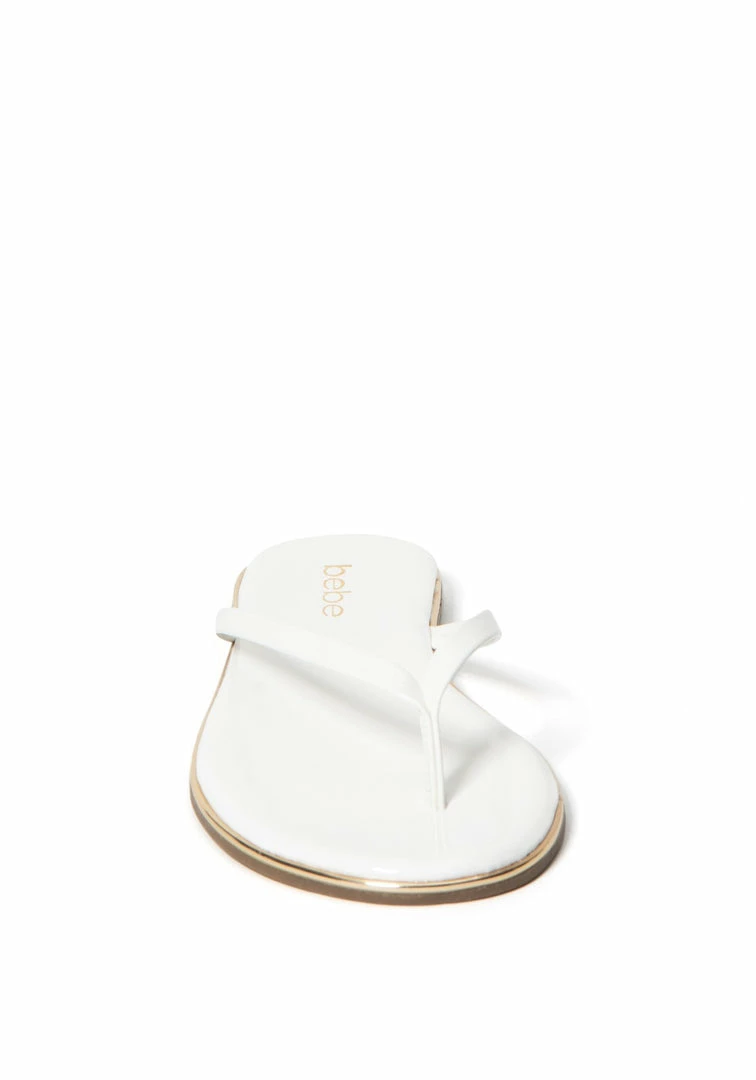Class up casual looks with these glossy patent flip-flops that flaunt luxe metallic-tipped midsoles.